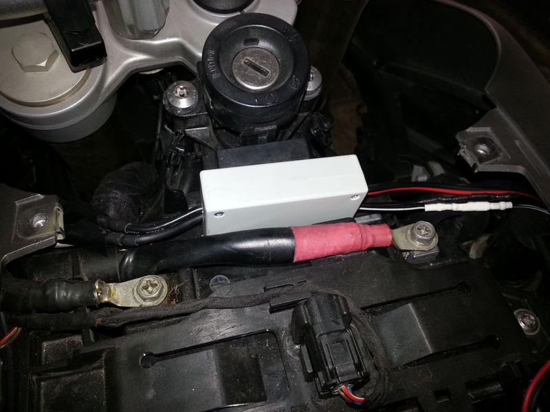 Alternativ (und so auch im Falle meiner F800) lässt sich der Kettenöler aber auch an dem Bordspannungsmodul betreiben, das eine steilere Abschaltrampe erzeugt.
