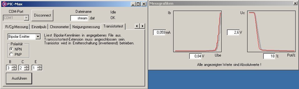 Hat man erst einmal herausgefunden (oder zumindest einen Verdacht), welche Komponente(n) in dem Baustein sind, lassen sich mit der Erweiterung auch verschiedene Kennlinien (z.B. für Bipolartransistoren oder für MOSFETs) vermessen.