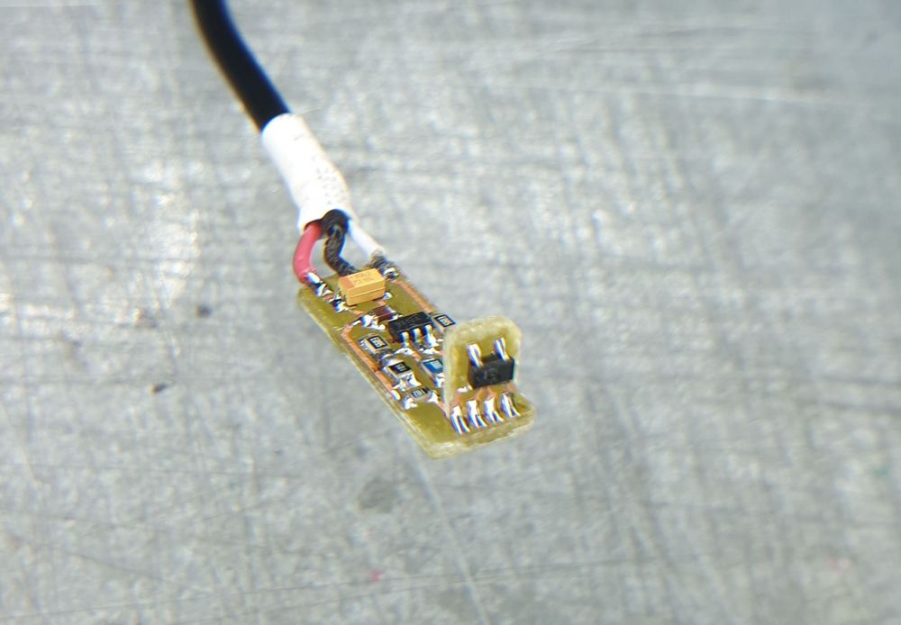 Die Hardware ist fast schon unspektakulär. Sie besteht im Wesentlichen aus den beiden fertig mitgelieferten HX711-Testboards, von denen lediglich der RC-Filter von den Eingängen entfernt und deren Samplerate auf 90Hz hoch gesetzt wurde. Zur Bestimmung der Referenzposition am Rad wird ein Hall-Element verwendet, dessen Signal noch durch den Differenzverstärker IC1 verstärkt wird. Dieser bestimmt die Position zweier Magnete, die am Rad angebracht werden. Zusammengefasst werden die Daten des Positionssensors und der beiden Messsensoren von einem PIC16F676, der die Daten ohne weitere Bearbeitung über UART an einen PC weiterleitet.