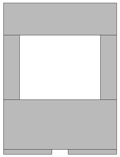 Der Lichtrahmen selber wurde aus 3 Schichten von 3mm starken matt-schwarzen Plastikplatten gebaut, wie man sie im Bastelladen bekommt. Die beiden äußeren Schichten (siehe Bild 1) sind gleich und maskieren das Lichtfeld des Sensors, also den Bereich, in dem durchfallende Objekte registriert werden sollen. Sie dunkeln den inneren Bereich gegen äußere Lichteinflüsse ab.