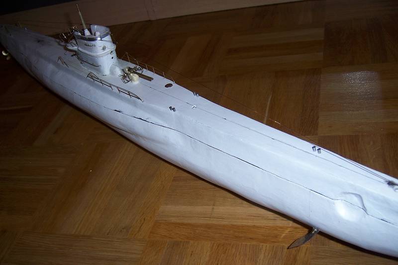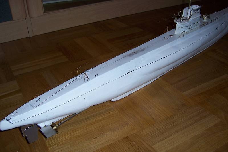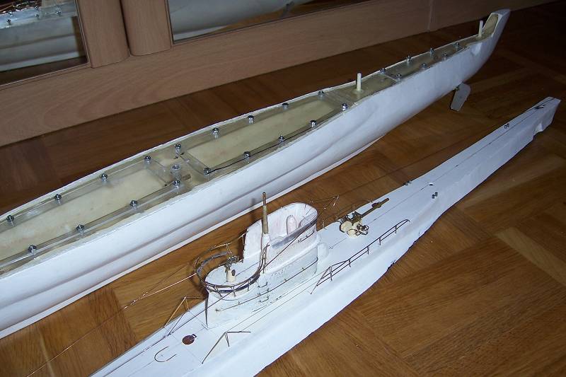 Das Modell von U-564 ist seit 2008 im Bau. Leider komme ich zeitlich nicht mehr so recht dazu, das Boot fertigzustellen. Der Rumpf ist in GfK-Technik aus einer Negativ-Form ausgeführt. Es ist wie meine restlichen Modelle (bis auf die Endeavour) ein "Meter-Modell", d.h. genau einen Meter lang. Die hinteren Tiefenruder sind starr, aber die vorderen sind steuerbar. Das Boot soll dadurch im getauchten Zustand hoch-tief manövrierbar sein.
